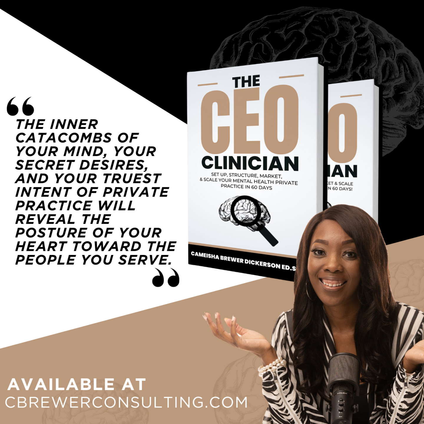 If you are trying to grow your private practice as a therapist, this is the book for you. Cameisha gives it to you straight, no chaser. She uses personal stories and lessons she's learned to help you on your journey to become a CEO Clinician. Be coachable, do the work and follow the plan she gives you and you will succeed in becoming the CEO of your business and your life. A must read for every therapist who desires a private practice!